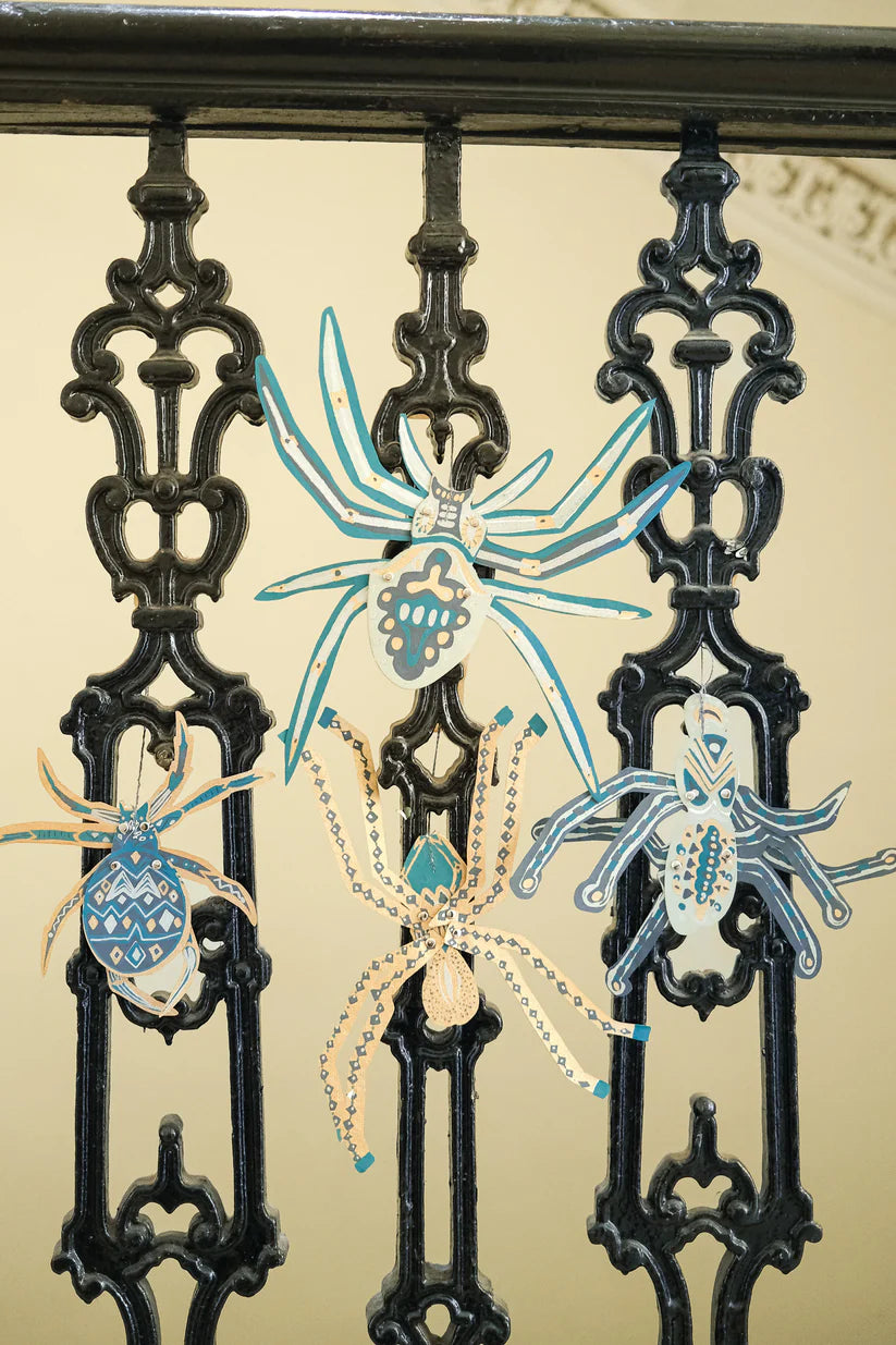 Set of 4 3-dimensional paper decorations. Screenprinted by hand on both sides of recycled paper by artisans in Jaipur, India. Designed by East End Press.
