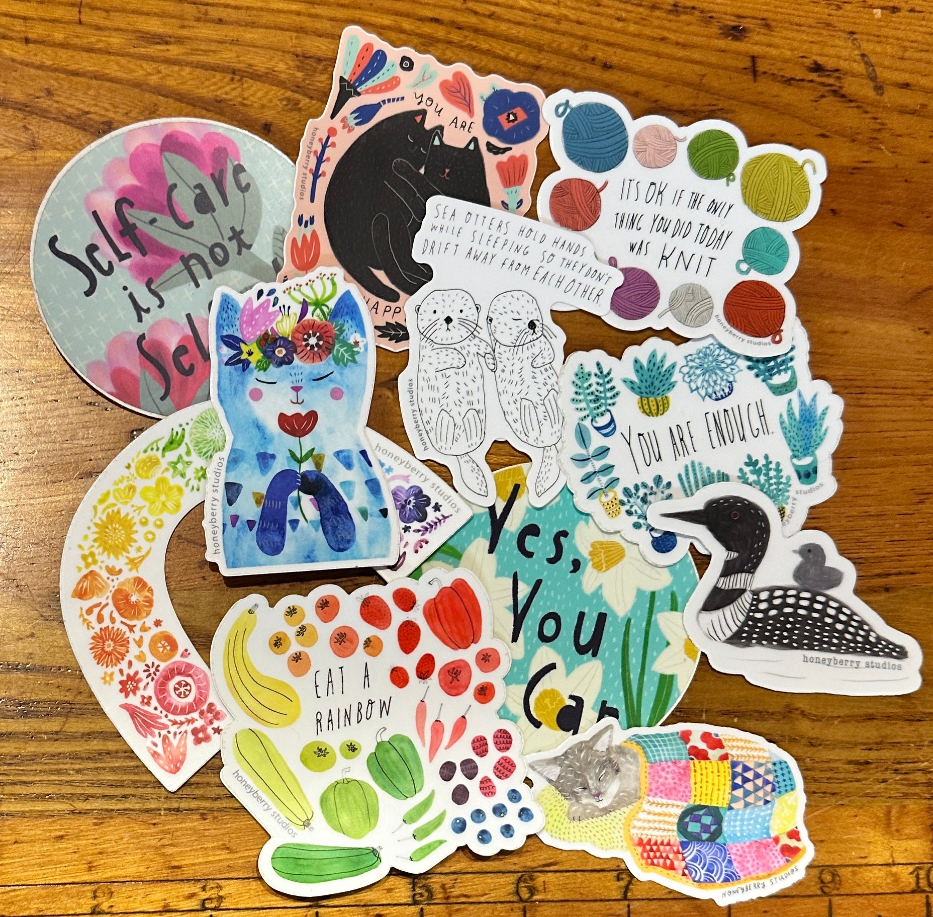 Stickers designed by Yuko Miki of Honeyberry Studios. Made in the US of weather resistant vinyl, suitable for use indoors or out.
