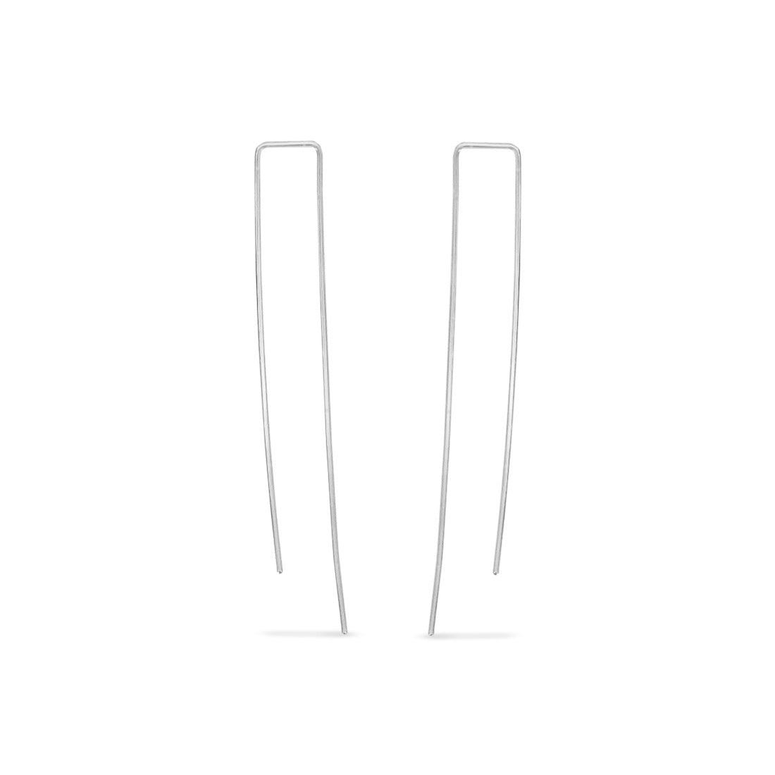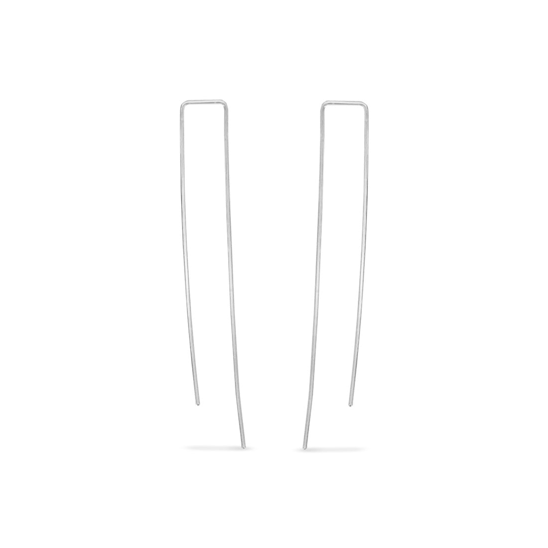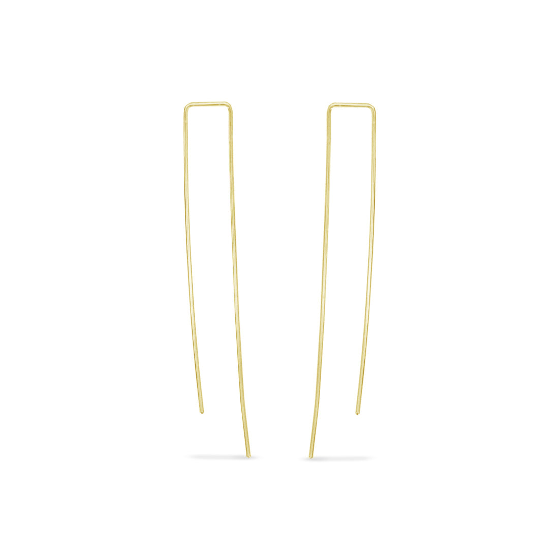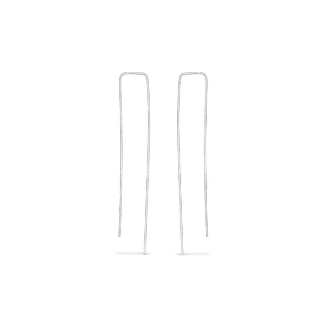 The Dentado threaders feature accents of a soft, jagged finish and rustic details. Elongated geometric threader hoop earrings embody a chic rectangular design with accentuated linear curves in crescent form. The earrings' asymmetrical details contour your features with intent. Slip on effortlessly and dangle in delight. An essential hoop to complement any outfit for every day. Hand-shaped and forged by hand from start to finish.