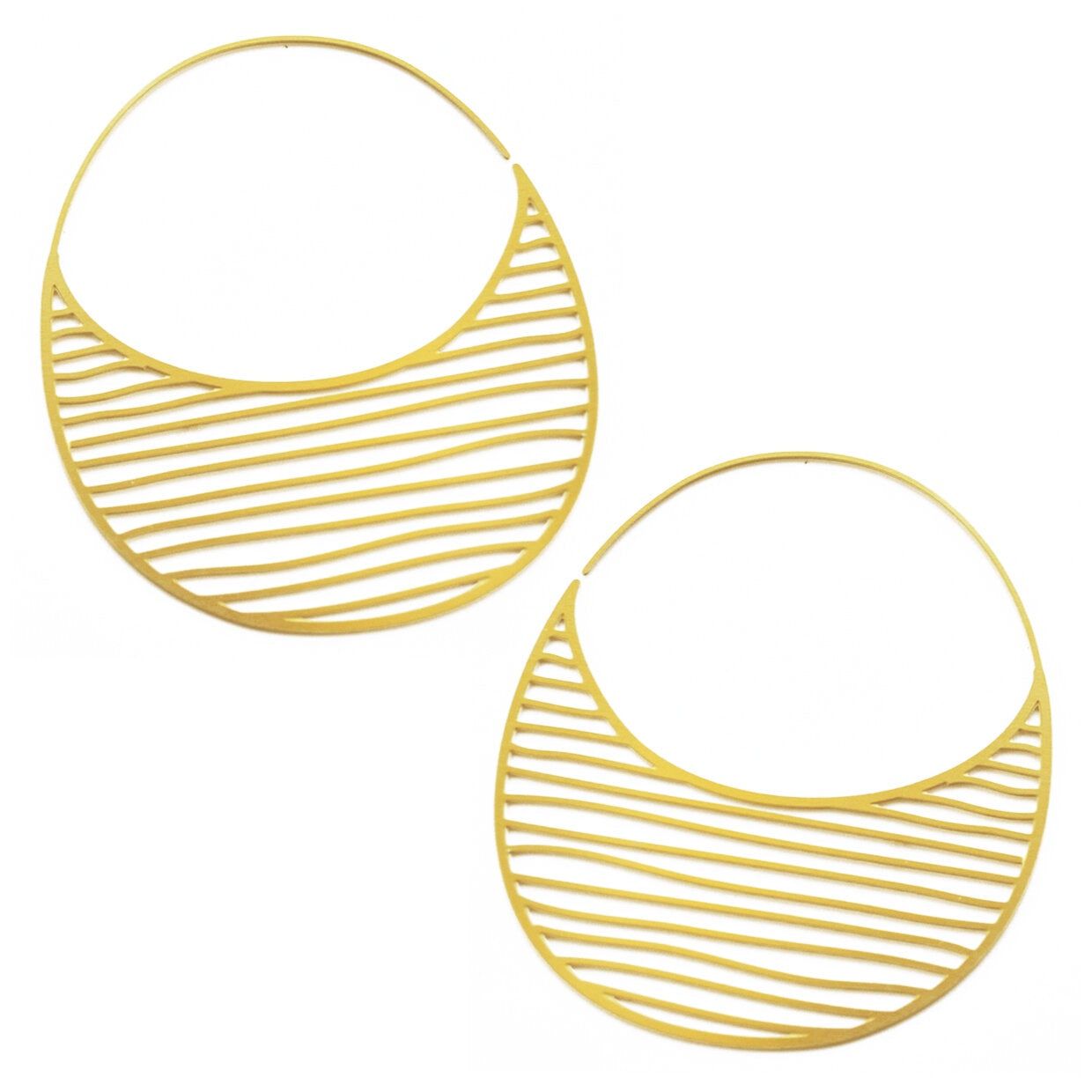 2" x 1.6" etched stainless steel earringsin 2 finishes - steel and plated with 20k yellow goldwhite rubber stoppers includednickel free